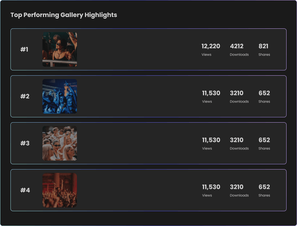 Deliver high-quality, ready-to-share content through curated galleries designed to drive earned media and organic reach.